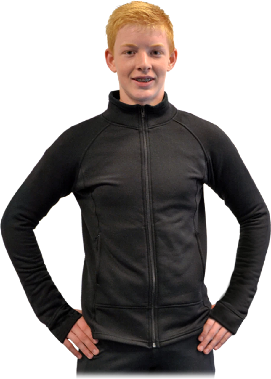Black Unisex Zip Up Fleece Jacket with Zipper Pockets & Thumb Holes
