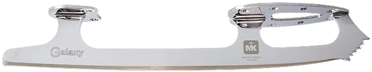 The latest offering in the MK product range, the new MK Galaxy blade features an unmatched chrome finish and cross-cut teeth. While skaters leave their boot/blade combination sets for the first time, the Galaxy is an option which provides optimum bite for those learning their toe jumps. It has been expertly designed to accommodate all basic skills required of the beginner freestyle and synchronized skater.